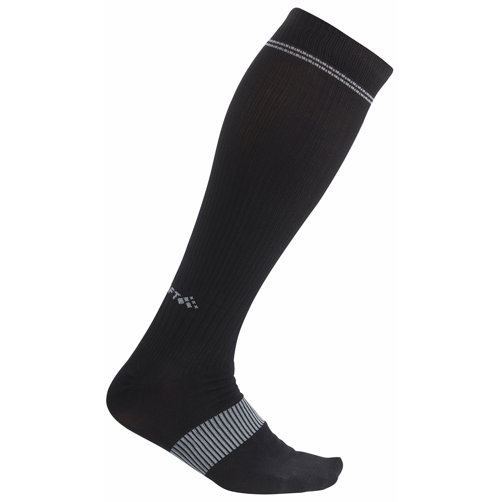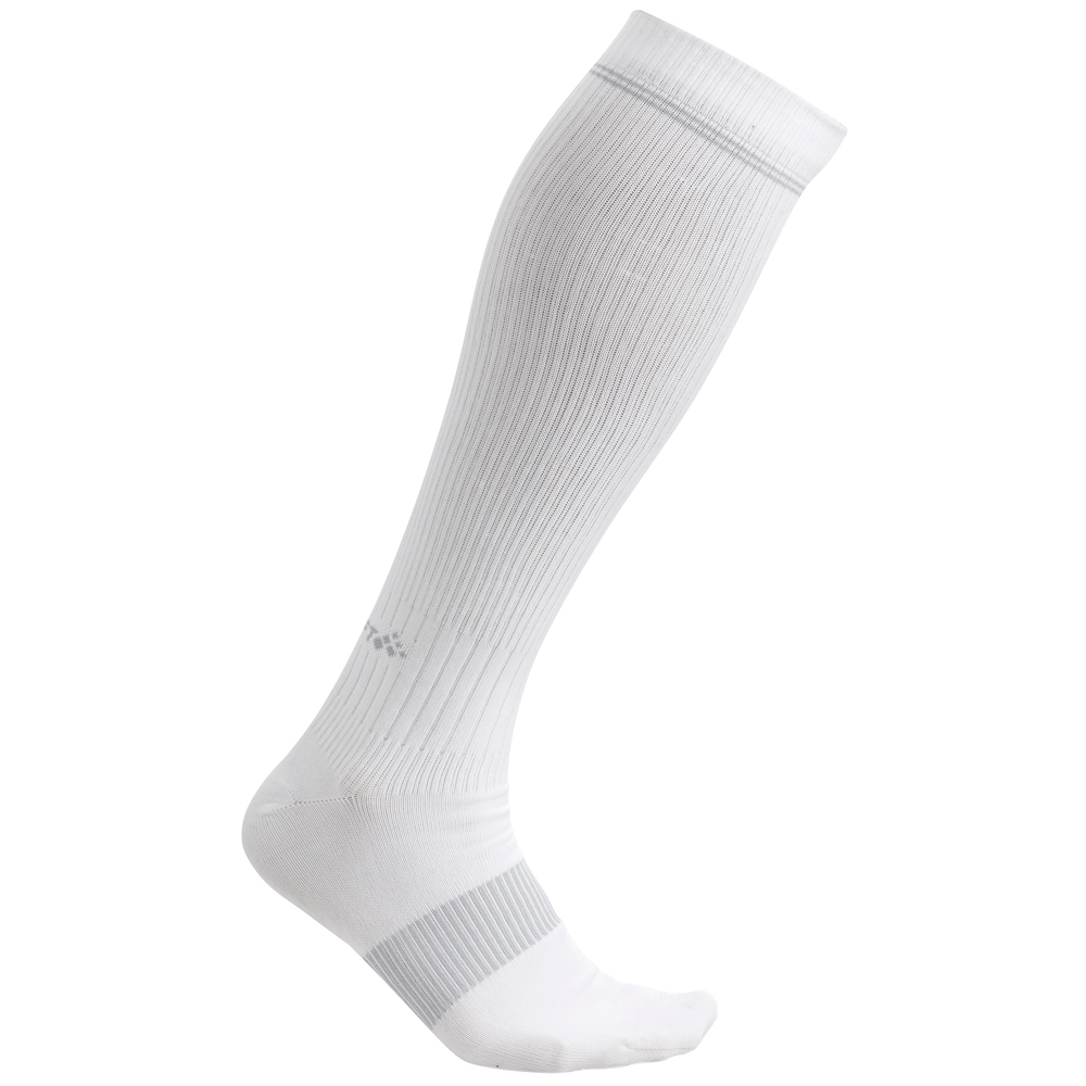 Tight compression fit over the calve reduce muscle vibration and focus power. Channel stitched ultra thin uppers allow warm air to circulate and cool down. Wide lycra inserted cuffs grip the socks from fitting beneath the knees.